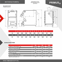 - Котлы PRIMUS предназначены для отопления индивидуальных жилых домов и зданий коммунально-бытового назначения, оборудованных системами водяного отопления с естественной или принудительной циркуляцией, а также приготовления пищи.- Особенностями данного котла являются небольшие габаритные размеры, экономичность, надежность, простота обслуживания и эксплуатации. Благодаря продуманной конструкции котлы легко обеспечивают нагрев воздуха в помещениях площадью до 200 м2.- Различная производительность котлов позволяет подобрать модель с такой мощностью, которая гарантирует самую высокую эффективность и наиболее экономичную работу.